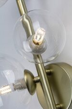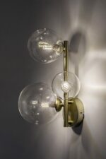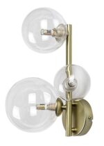 Zidna lampa Rabaluk Aslov je savršen izbor za dnevnu ili spavaću sobu ako tražite modernu i kreativno dizajniranu komplementarnu lampu koja takođe obezbeđuje željeni intenzitet svetlosti. Metalni uređaj briljantne zlatne boje upotpunjen je providnim sfernim staklenim nijansama, koje podsećaju na male i velike mehuriće. Pošto su izvori svetlosti jasno vidljivi kroz njih, dobra je ideja koristiti nekonvencionalne, estetske sijalice. Različite veličine i pozicioniranja glava sijalica doprinose jedinstvenom izgledu već posebnog modela. Zidna lampa ima grla G9, u koje mogu da se smeste tri sijalice, svaka snage do 28 V. Proizvod se isporučuje bez izvora svetlosti.