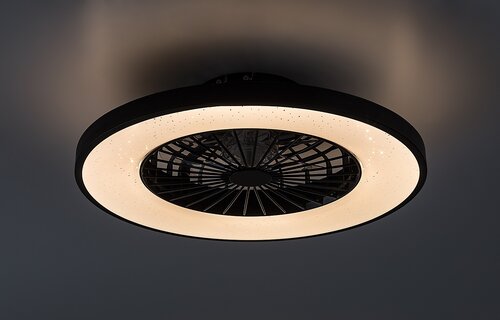 Plafonska lampa sa ventilatorom Rabalux Dalfon 2 je idealan izbor za one koji traže svestrani model 2-u-1. Lampa ima ugrađen LED izvor svetlosti visokih performansi, a pored ventilatora, nudi i druge pametne funkcije: osvetljenost i temperaturu boje možete podešavati daljinskim upravljačem, a lampa takođe ima memoriju, tajmer i funkciju noćnog svetla. Temperatura boje može se podešavati i zidnim prekidačem. Kućište je izrađeno od metala i plastike u crnoj boji. Abažur je od bele plastike sa elegantnim efektom zvezdanog neba na površini. Brzina ventilatora je podesiva, a snaga je dovoljna za prostorije do 33 m². Plafonska lampa sa ventilatorom karakteriše energetski efikasan rad i dug vek trajanja. Preporučuje se pre svega za moderne dnevne sobe, spavaće sobe i radne prostore.