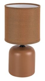 Stona lampa Rabalux Daphni preporučuje se onima koji traže malu, elegantnu pomoćnu lampu za dnevnu sobu ili spavaću sobu. Ovaj model čistog dizajna može se postaviti na noćni ormarić, mali sto ili čak na policu. Cilindrično telo noćne lampe izrađeno je od braon keramike, dok je abažur izrađen od tekstila iste boje. Abažur je cilindričnog oblika i otvoren je na vrhu i dnu. Topli tonovi ovog modela doprinose stvaranju prijatne i domaće atmosfere. Može se koristiti sa jednom sijalicom snage do 40 W. Tip grla je E14. U zavisnosti od ukusa, možete izabrati sijalicu koja emituje toplo ili prirodno belo svetlo. Keramička stona lampa se uključuje pomoću prekidača na kablu. Isporučuje se bez izvora svetlosti.