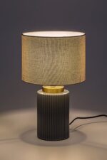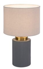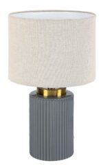 Stona lampa Rabalux Glovy preporučuje se onima koji traže pažljivo dizajniranu pomoćnu lampu za spavaću ili dnevnu sobu. Zahvaljujući svom suzdržanom koloritu, ovaj model se lako uklapa u različite stilove enterijera. Možete je postaviti na noćni ormarić ili sto. Telo lampe izrađeno je od sive keramike sa rebrastim uzorkom, dok je abažur od belog tekstila. Abažur je cilindričnog oblika i otvoren je na vrhu i dnu. Zahvaljujući svetloj boji, model propušta dosta svetlosti, pa se može koristiti i kao lampa za čitanje. Radi sa jednom sijalicom snage do 40 W. Tip grla je E14. Noćna lampa je upotpunjena crnim tekstilnim kablom i prekidačem na kablu. Isporučuje se bez izvora svetlosti.
