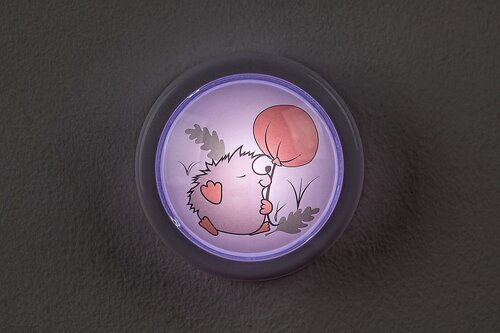 Rabalux Hedgy pushlight je model dizajniran od strane Rabaluxa. Preporučujemo ga svima koji traže jednostavno za korišćenje, a istovremeno dekorativno noćno svetlo za dečiju sobu. Lampa je okruglog oblika, u potpunosti izrađena od plastike i ukrašena motivom vilinskog ježa i balona na beloj pozadini. Poseduje ugrađeni LED izvor svetlosti sa izuzetno dugim vekom trajanja. Osvetljava hladnim belim svetlom, što olakšava snalaženje po sobi ako nešto probudi vaše dete tokom noći. Noćno svetlo se jednostavno uključuje i isključuje pritiskom na abažur, tako da nije potrebno pipkati po mraku u potrazi za prekidačem. Dečija lampa može se koristiti sa dve AA baterije. Noćno svetlo za dečiju sobu se isporučuje bez baterija.