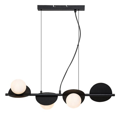 Rabalux Jules 4-sijalice viseća lampa se preporučuje onima koji traže model sa kreativnim dizajnom i jedinstvenim izgledom. Lampa je izrađena od metala u elegantnoj crno-beloj kombinaciji boja sa staklenim senkama u industrijskom stilu. Sastoji se od okruglih i sfernih oblika: četiri lampe imaju ravnu, okruglu zakrivljenu osnovu i sfernu belu senku. Lampe su postavljene u red, jedna pored druge, na nosaču koji visi sa dekorativne baze. Svaka lampa je okrenuta u različitim pravcima, omogućavajući da prostor bude efikasno osvetljen. Viseća lampa se može pričvrstiti za plafon pomoću izduženog kvadratnog dekorativnog postolja. Idealna je za dnevnu sobu, trpezariju, spavaću sobu, pa čak i kuhinju. Može se koristiti sa četiri sijalice, svaka snage do 5 W. Tip grla je G9. Lampa se isporučuje bez izvora svetlosti.