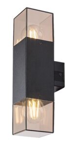 Moderna spoljna zidna lampa Loanda može se postaviti na terasu ili na spoljašnji zid kuće. Ovaj crni model je napravljen od aluminijuma i odlikuje ga geometrijski oblici. Dve glave lampe su okrenute nagore i nadole i obe su dopunjene kubičnim zatamnjenim abažurom od plastike. Ovo svetlo se može pričvrstiti na zid uz pomoć kvadratne dekorativne osnove. Loanda se može koristiti sa dve sijalice, svaka snage do 12 V. Tip grla je E27. Pošto zatamnjeni abažuri omogućavaju da se jasno vide izvori svetlosti, ako ovaj model koristite na terasi, možete ga učiniti još zanimljivijim upotrebom estetskih sijalica nekonvencionalnog oblika. Dimenzije spoljnog svetla su sledeće: širina 80 mm, visina 315 mm, rastojanje od zida 110 mm, prečnik ugradnje 65 mm. Lampa ima IP44 zaštitu koja obezbeđuje da je zaštićena od prašine i prskanja vode iz bilo kog pravca. Loanda spoljna zidna lampa se isporučuje bez izvora svetlosti.