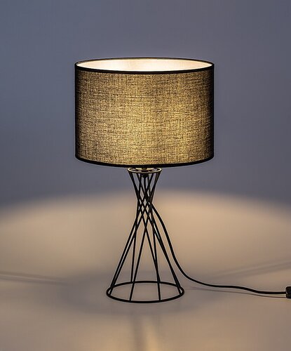 Stona lampa Rabalux Nivra idealna je za one koji traže modernu pomoćnu lampu sa kreativnim dizajnom. Ovaj model je u potpunosti crne boje, stoji na metalnim nogama koje zajedno formiraju oblik kupe i završavaju se kružnom bazom. Abažur je cilindričnog oblika, otvoren na vrhu i dnu, i izrađen je od crnog tekstila. Noćna lampa se preporučuje pre svega za spavaću i dnevnu sobu. Radi sa jednom sijalicom snage do 40 W. Tip grla je E27. Pošto je abažur tamne boje, propušta malu količinu svetlosti, što ovaj model čini savršenim za diskretno noćno osvetljenje. Stona lampa je dopunjena crnim tekstilnim kablom i prekidačem na kablu. Isporučuje se bez izvora svetlosti.
