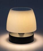 Spoljna stolna lampa Odera modernog stila odličan je izbor kada imate lepu večeru ili letnji večernji razgovor na terasima. Ovaj crni model ima beli abažur nalik kišobranu i robusnu okruglu ukrasnu osnovu, a u potpunosti je napravljen od plastike. Odera ima ugrađen LED izvor svetlosti snage 3 V, svetlosnog fluksa od 140 lumena sa senkom i 360 lumena bez senke i temperaturom boje od 3.000 K. Sijalica koja emituje toplo belo svetlo ima životni vek od 25.000 sati. Lampa se može zatamniti u 3 koraka, odnosno njena osvetljenost se može podesiti pomoću prekidača na dodir. Baterija ima napon od 3,7 V i kapacitet od 2.000 mAh. Ovaj model koji se može puniti preko USB kabla ima sledeće dimenzije: visina 160 mm, prečnik 150 mm, prečnik ugradnje 125 mm. USB kabl je dužine 500 mm, vreme punjenja je 7 sati. IP44 zaštita spoljne lampe Odera obezbeđuje da je zaštićena od prodora predmeta prečnika do 1 mm i od prskanja vode iz bilo kog smera.