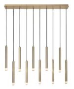 Rabalux Ramira 10-sijalica viseća lampa se prvenstveno preporučuje onima koji traže viseću lampu minimalističkog stila, ali sa impresivnim dimenzijama i svetlosnim intenzitetom. Lampa je izrađena od metala u elegantnoj zlatnoj boji i dopunjena je prozirnim akrilnim senkama i dugim kvadratnim dekorativnim postoljem u istoj boji kao glave lampe. Lampe malog prečnika su izrađene u tubularnom, cilindričnom obliku i postavljene su u red, jedna pored druge. Glave lampe vise na različitim visinama, što ovom modelu daje jedinstven izgled. Viseća lampa je idealna ne samo za dnevnu sobu, već i za kuhinju, trpezariju ili spavaću sobu. Može se koristiti sa deset sijalica, svaka snage do 5 W. Tip grla je G9. Lampa se isporučuje bez izvora svetlosti.