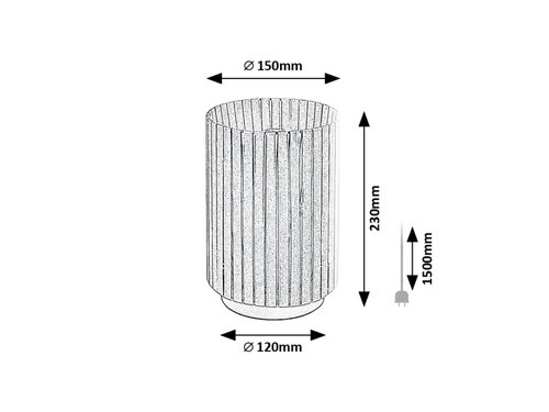 Rabaluk Revan stona lampa je idealan izbor za ljubitelje vintage stila. Ako tražite komplementarnu lampu koja će obezbediti udobno osvetljenje u prostoriji, ovo je model za vas. Noćna lampa ima cilindrično metalno učvršćenje u elegantnoj crnoj boji, sa karakterističnim sjenilom od sivih tekstilnih traka. Svetlost iz sijalice se filtrira kroz praznine između traka. Utičnica E27 može da ugradi sijalicu snage do 6 V. Mala stona lampa koja štedi prostor preporučuje se za dnevnu ili spavaću sobu, gde se može postaviti na bilo koji sto, na noćni stočić ili čak na polici. Ovom dizajnerskom lampom upravlja kablovski prekidač. Proizvod se isporučuje bez izvora svetlosti.