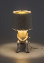 Rabalux Smurfy stona lampa preporučuje se onima koji vole zabavne lampe sa neobičnim dizajnom. Ova dekorativna lampa stoji na pravim nogama – ili bolje rečeno sedi. Svjetiljka je oblikovana poput malog čoveka koji nosi težinu lampe. Dizajn svjetiljke omogućava ovom modelu da sedi na ivici stola. Glavu figurice zamenjuje kremasto obojen, pahuljasti tekstilni abažur. Svjetiljka je izrađena od keramike i ima kremastu boju, poput abažura. Zabavna stona lampa je savršena za sto ili policu u dnevnoj sobi ili na noćnom stočiću u spavaćoj sobi. Upravlja se kablovskim prekidačem i može se koristiti sa jednim izvorom svetlosti snage do 40 W. Tip grla je E14. U zavisnosti od vašeg ukusa, možete izabrati izvor svetlosti koji emituje toplo ili prirodno belo svetlo. Stona lampa se isporučuje bez izvora svetlosti.