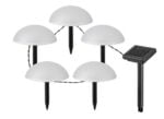 Solarna lampa Treppio u modernom stilu je praktično i spektakularno rešenje za osvetljavanje vaše bašte. Ovaj potpuno plastični crni model sastoji se od jedinice koja sadrži solarnu ćeliju i pet okruglih lampi u seriji, od kojih svaka ima beli abažur. Treppio ima ugrađene LED izvore svetlosti, svaki sa snagom od 1 V, svetlosnim fluksom od 1,2 lumena sa senkom i 6 lumena bez senke, i temperaturom boje od 4.000 K. Sijalice koje emituju prirodnu belu svetlost imaju životni vek od 20.000 sati. Baterija ima napon od 1,2 V i kapacitet od 600 mAh. Lampe prilagođavaju svoju osvetljenost u skladu sa okolnostima. Treppio koji ima prekidač ima sledeće dimenzije: ukupna dužina 4.000 mm, visina svake lampe je 60 mm, prečnik im je 150 mm. IP44 zaštita ove lampe koja se nalazi na dole obezbeđuje da je zaštićena od upada predmeta prečnika do 1 mm i od prskanja vode iz bilo kog smera.