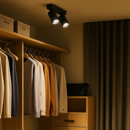 Dvožilna plafonska spot lampa Rabalux Yorli idealan je izbor za one koji traže pokretnu lampu koja pruža usmereno osvetljenje. Crna spot lampa ima aluminijumsko telo, upotpunjeno cilindričnim plastičnim senilima, i pričvršćuje se za plafon pomoću izdužene dekorativne baze sa zaobljenim krajevima. Pošto se glave lampe mogu pojedinačno pomerati, svetlost se može usmeravati po potrebi. Spot lampa se preporučuje pretežno za dnevnu sobu, spavaću sobu ili hodnik. Možete izabrati sijalice koje emituju prirodno ili toplo belo svetlo. Plafonska spot lampa koristi dve sijalice, svaka snage do 7 W. Tip grla je GU10. Dvožilna spot lampa se isporučuje bez izvora svetlosti.